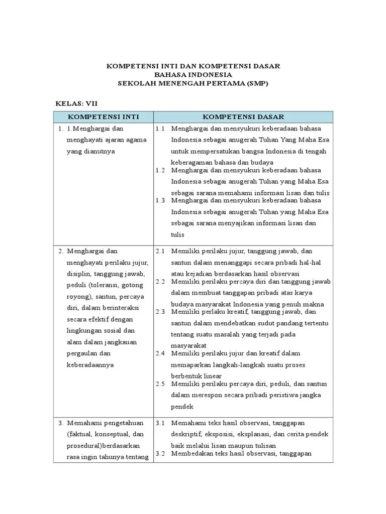 Kompetensi inti dan kompetensi dasar bahasa indonesia.